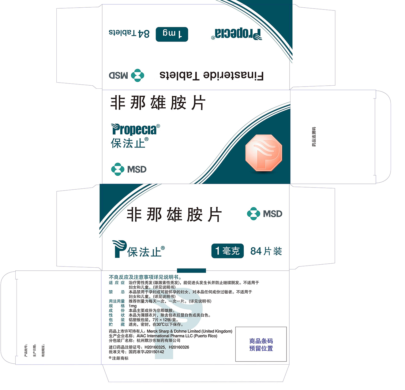 保法止®(非那雄胺片)1mg84片