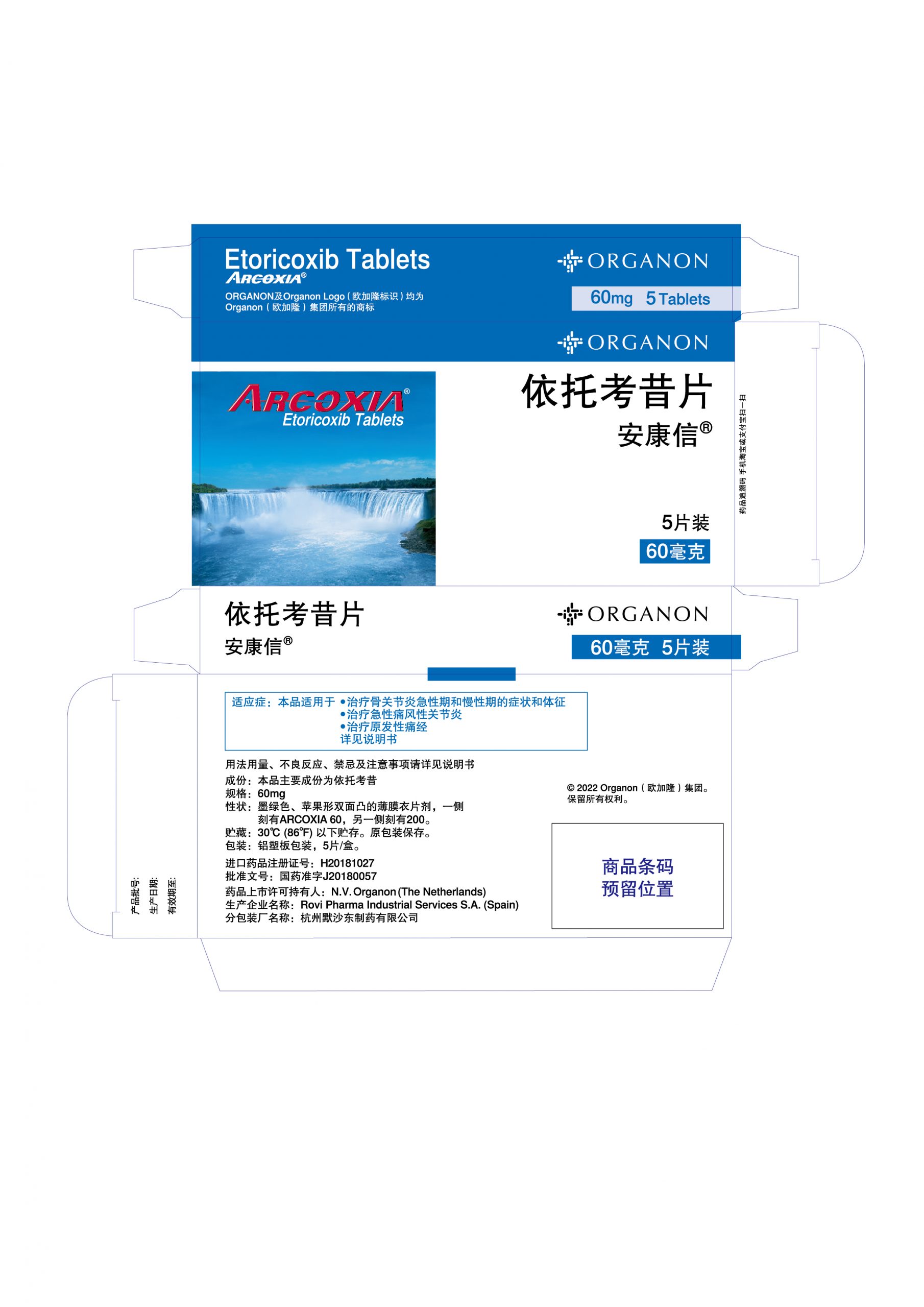 60毫克5片装安康信®(依托考昔片)