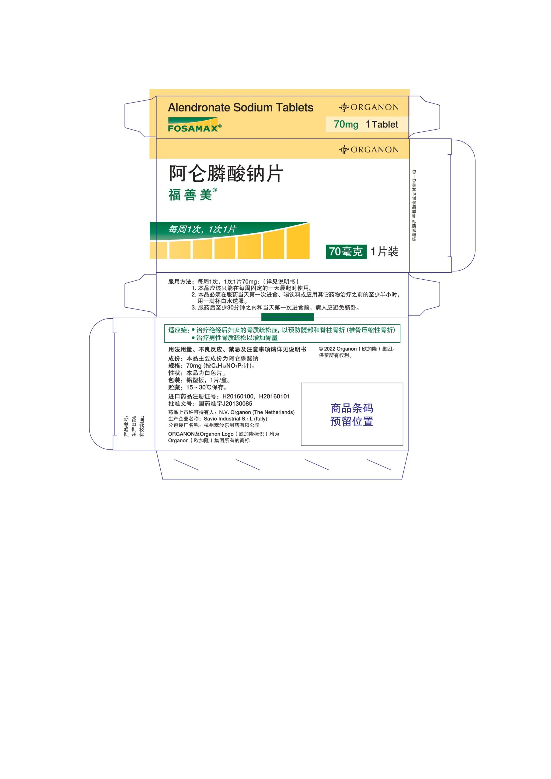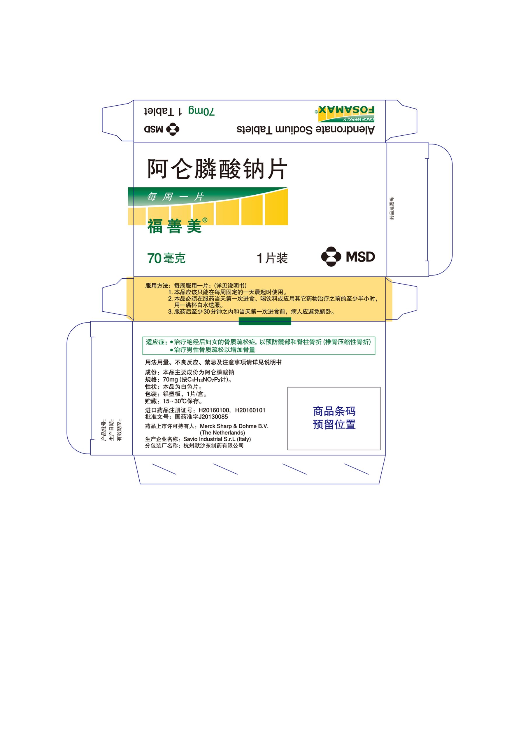 70mg1片盒签福善美®
