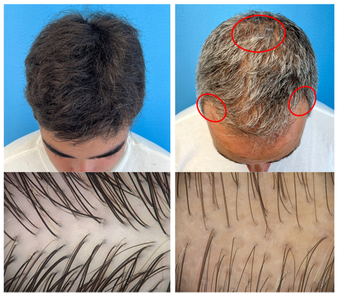 图1. 男性雄秃患者(右)与头发正常者(左)对比[3]