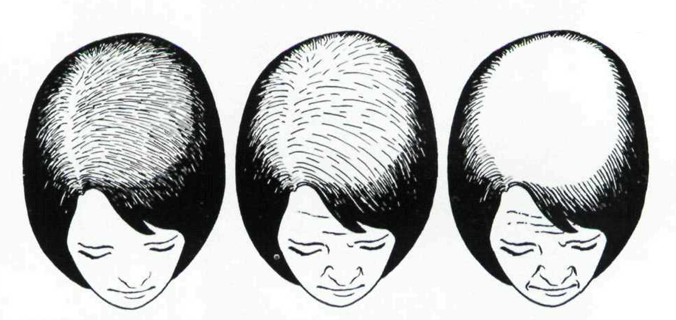 女性以头顶部毛发进行性减少和变细为主,称为女性型秃发;