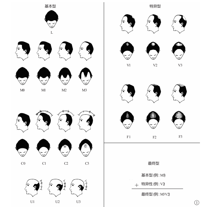 2种代表额部(F)与顶部(V)头发密度的特殊型。
